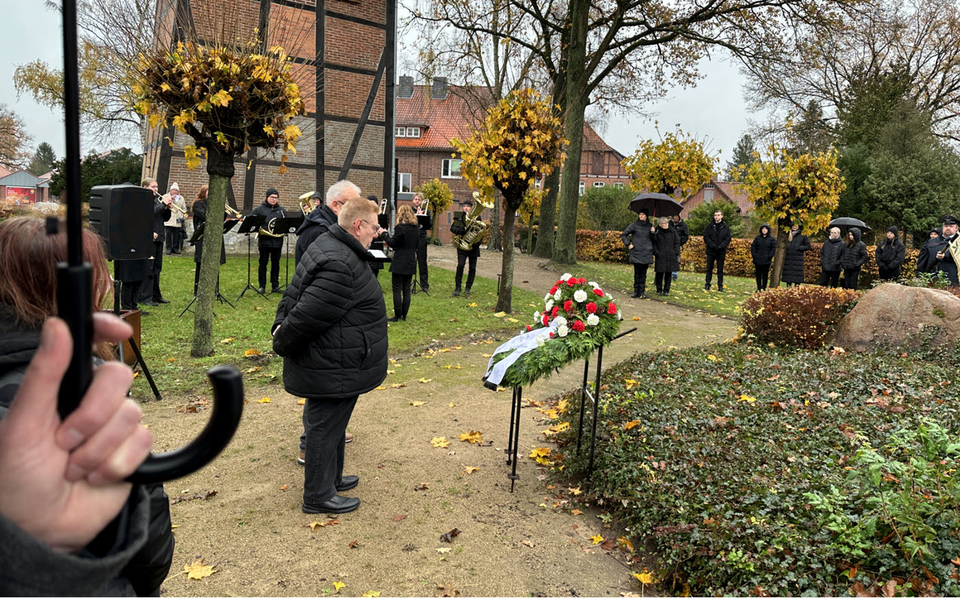 Am 16.11.2025 war in Deutschland Volkstrauertag. Auch in Bardowick wurde der Opfer der Kriege gedacht. Traditionell lädt der 1. Rathmann des Flecken Bardowick, Lothar Meyer, alle ortsansässigen Vereine zu einer Ansprache mit anschließender Kranzniederlegung ein. Der TSV Bardowick war durch den 2. Vorsitzenden Heinz Bußkamp und den 1. Vorsitzenden Jürgen Preuß vertreten. Wir zeigen damit die enge Verbundenheit des TSV mit dem Ort und seiner Gesellschaft. Während der Feier hielten Lothar Meyer, Pastorin Johanna Reimers und 4 Konfirmanden kurze Reden, die alle Anwesenden innehalten ließen.